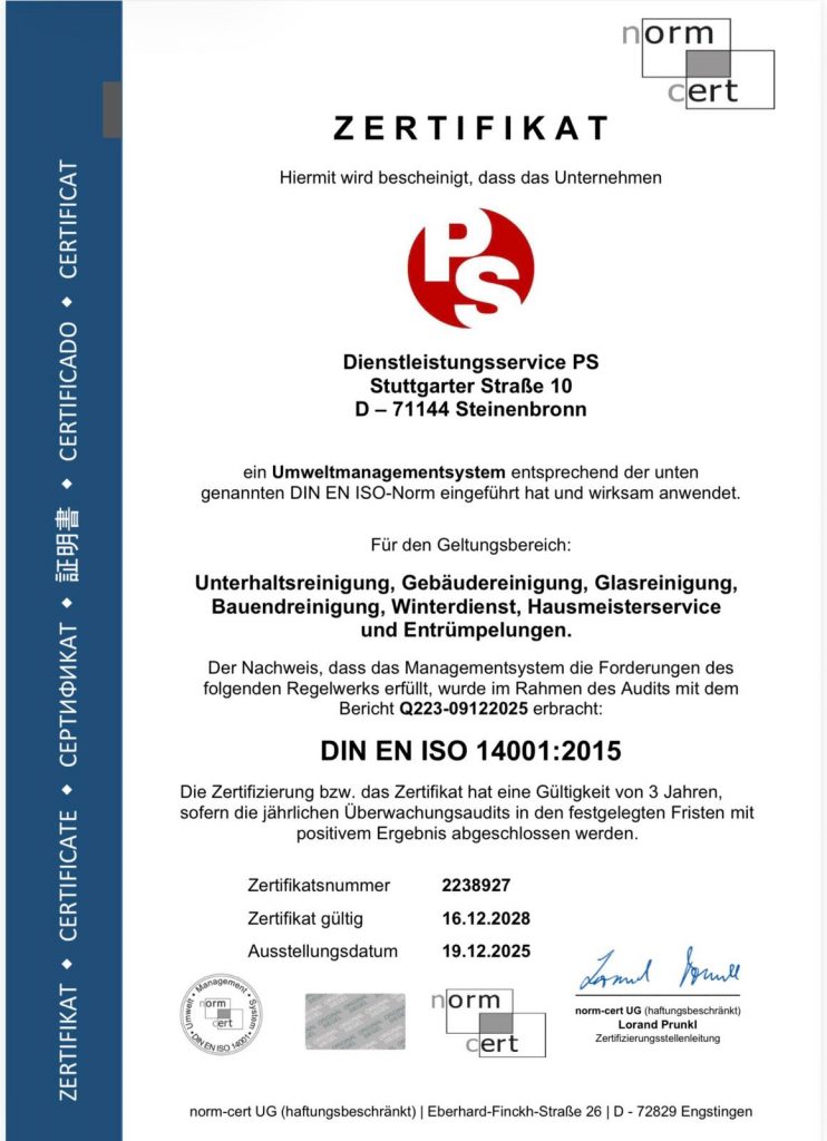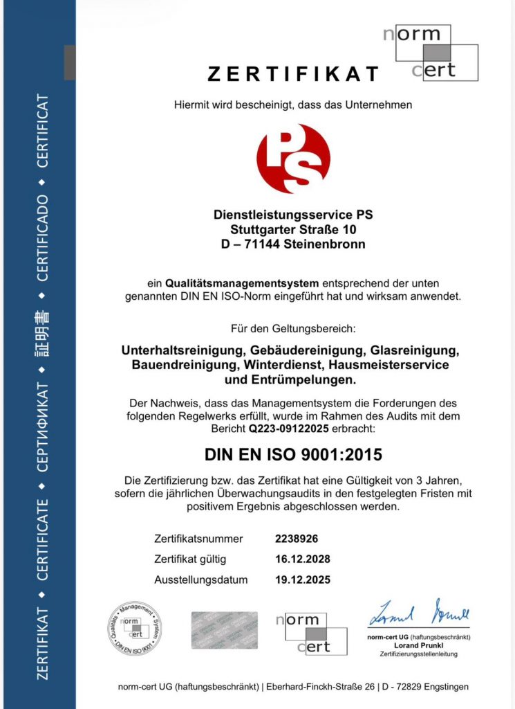 Dienstleistungsservice PS – Ihr Partner für Sauberkeit und Zuverlässigkeit